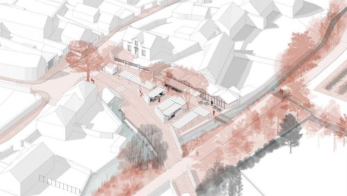 La place du lavoir, mise en valeur d'un patrimoine bâti, reformer la continuité hydraulique - axonométrie