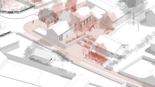 La place de la mairie , orienter la mairie vers le centre-bourg - axonométrie