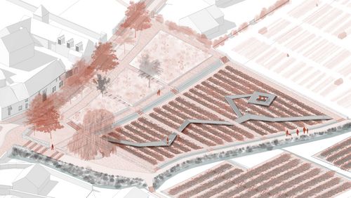 Le jardin du cresson , mise en valeur d'un patrimoine naturel et culturel - axonométrie