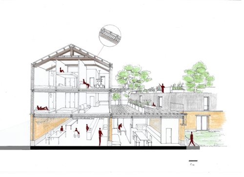 Coupe transversale sur le logement collectif