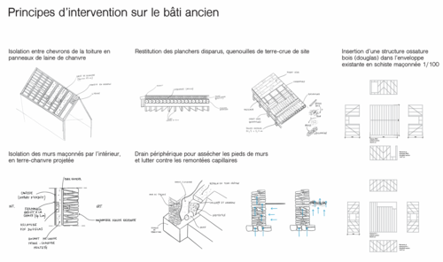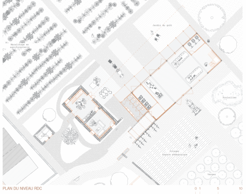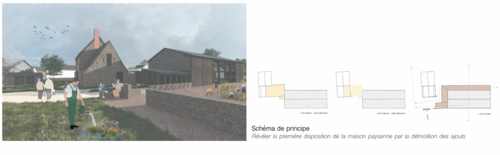 Ces différents programmes s’inscrivent dans un projet de réflexion sur l’ensemble du centre bourg, où chaque élément programmatique serait lié afin qu’une activité prenne vie en suivant les principes de frugalité, lisibilité, pédagogie et d'économie locale et circulaire.