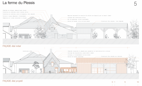 Tout en proposant la requalification du centre-bourg, le projet propose un principe d’intervention architecturale sur ces bâtiments abandonnés et menacés de remplacement par des constructions pavillonnaires.