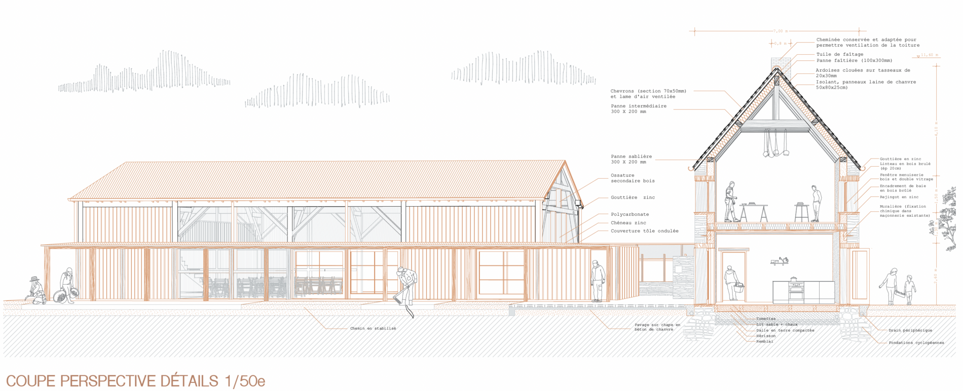 Ces différents programmes s’inscrivent dans un projet de réflexion sur l’ensemble du centre bourg, où chaque élément programmatique serait lié afin qu’une activité prenne vie en suivant les principes de frugalité, lisibilité, pédagogie et d'économie locale et circulaire.