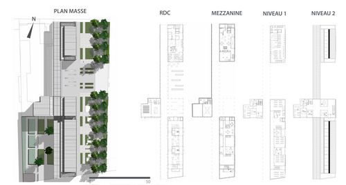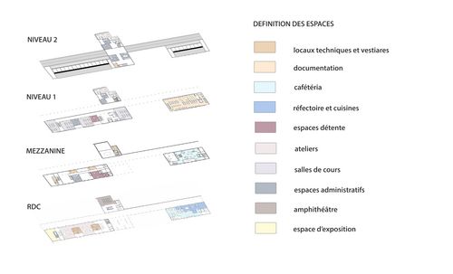 Le choix d’un centre d’artisanat d’art a été motivé par la volonté de transmission de savoir-faire à échelle humaine quand il a été question de production intensive à l’ère industrielle. Le site se présente comme un long terrain de 132 m de long sur 60 m environ de large, offrant la possibilité d’aménagement paysager par séquences végétales et minérales alternées, potager social, place attenante au Palais des congrès de Montreuil, dans le respect environnemental. Étroitesse du site renforcée par les hauts bâtis avoisinants, la hauteur du projet, ordonnancée par des trames de 5 et 6 m, s’est voulue basse pour apporter du souffle visuel et de l’espace, avec un axe de composition majeur, une galerie, où se greffent les éléments du programme; un point d’orgue.