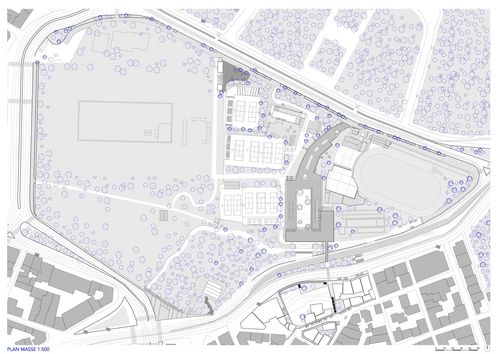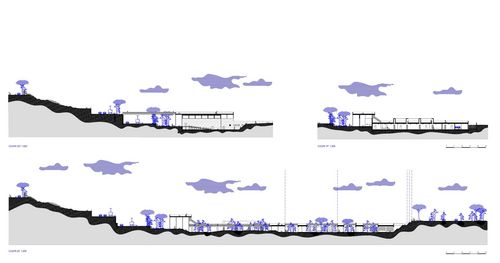 La stratégie réside principalement dans la transformation programmatique de la piscine. Le complexe sportif devient un programme culturel et public qui incarnera la mémoire de l’ancien passage du fleuve oublié.