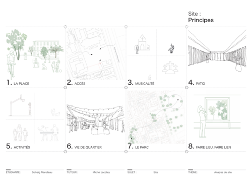 - propositions spatiales en termes d'espaces publics, d’usage, de limites et d'impact paysager ;