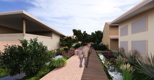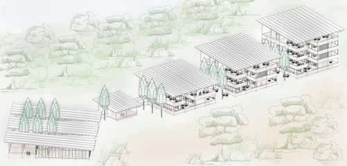 Pour mener à bien ce projet, nous avons utilisé une approche systémique pour cartographier les phénomènes anthropologiques et physiques, et ainsi diagnostiquer quatre problématiques majeures : biodiversité, catastrophes naturelles, phénomènes anthropologiques internes et d’immigration. Des stratégies spécifiques ont été élaborées pour chaque diagnostic, incluant des aménagements urbains tels que des corridors paysagers pour gérer les inondations. Les logements, inspirés des carbets vernaculaires sur pilotis, améliorent les conditions climatiques et offrent une résilience accrue. Les infrastructures, comme une médiathèque et une maison médicale, utilisent des structures en bois intégrées dans le paysage. Un grand parc central, cœur vert fédérateur, rassemble les différents programmes, facilitant une transition harmonieuse vers la nature et favorisant les interactions entre les habitants.