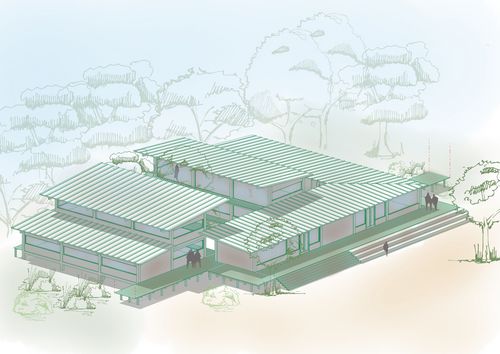 Axonométrie de la médiathèque & de la crèche des nouveaux quartiers.