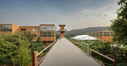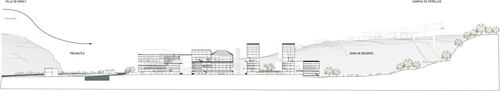 Comment renforcer le statut de capitale académique et d’innovation de Fribourg en s’appuyant sur son patrimoine architectural et naturel ? Pour répondre à cette problématique le projet s'inscrit à l'embouchure du Boulevard historique de Pérolles. Etablis par plateau afin de s'intégrer harmonieusement au site, il s'ajuste aux hauteurs des bâtis environnants composant une descente et une découverte progressive de la Boucle de Pérolles et de son paysage. Parmi ces plateaux, la passerelle du Bois de Pérolles constitue un élément fondamental et structurant dans le parcours et le fonctionnement du site. Le programme du campus se divise en plusieurs strates: la première est dédiée au programme universitaire offrant des locaux de travail et de réception du public, mais également des logements. La seconde strate rattachée à la passerelle au R+6 accueille un programme public apportant activité économique et emplois diversifiés au sein du nouveau quarter. Il dessert également les logements universitaires leur offrant une adresse depuis la passerelle publique.