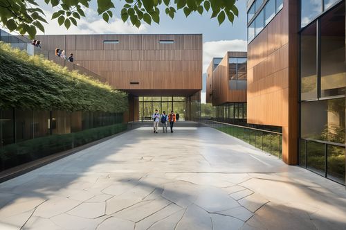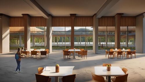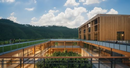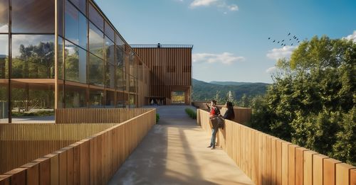 Le RDC ouvert sur la Sarine, grâce à la mise sur pilotis d'un bâti existant qui la longe, permet de reconnecter le site à sa charpente paysagère. L'ouverture des îlots sur l'environnement pour dégager des vues, mais également faciliter la ventilation naturelle et le captage solaire ont conduit à l'élaboration d'une nappe offrant un lieu de vie dynamique aux étudiants. Située au 1er étage, cette nappe universitaire s'installe au niveau de la structure existante et devient le lieu de rencontre et d'échange de l'Université. Au-delà de sa vocation sociale, cette nappe, reliant l'ensemble des bâtiments, permet de maintenir les activités et par conséquent le dynamisme du site en temps de crues. Cette circulation secondaire inspirée des principes architecturaux et sociaux des sites palafittiques devient le second cœur de l'Université. Les étages supérieurs permettent au projet de ne pas privatiser le site et les vues remarquables qu'il offre aux étudiants en accueillant une zone dynamique axée sur le tourisme vert, l'apprentissage et la contemplation. Le belvédère de l'hôtel incarne donc le lieu de convergence et d'appropriation du public et des touristes. Le R+8 présente une qualité particulière de par son caractère intimiste et isolé. À l'intersection des bâtiments de logement universitaire et ouvert sur le patio végétalisé de la bibliothèque, la cour étudiante représente le point culminant majeur du projet. Offert aux étudiants, il offre un espace de vie et d'échange perché dans les bois entre la cour de la Sarine et le ciel surplombant les coteaux.