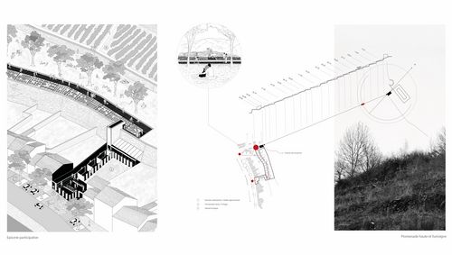 En réponse à la valeur incontestable des coteaux bordant le bourg, à la volonté de jeunes vignerons de s’approprier ce terroir brûlant d’actualité, ce projet vise à défricher la partie nord des coteaux Bleslois autrefois cultivés, à réorganiser les restanques traditionnelles qui soutiennent ces cultures, à implanter des vignes et à créer un funivigne (funiculaire viticole) pour faciliter l’exploitation de ces parcelles millénaires. Un chai viticole dédié à la vinification de fruit produit ainsi qu’une épicerie participative alimentant la fraternité villageoise tout en faisant la promotion des richesses du terroir forment le cœur du programme entrepris.