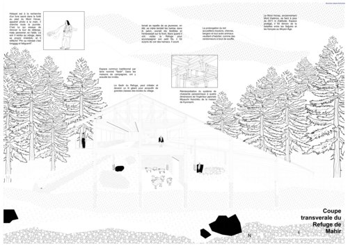 Le Refuge de Mahir, coupe perspective, 2024, Zara Metin