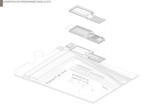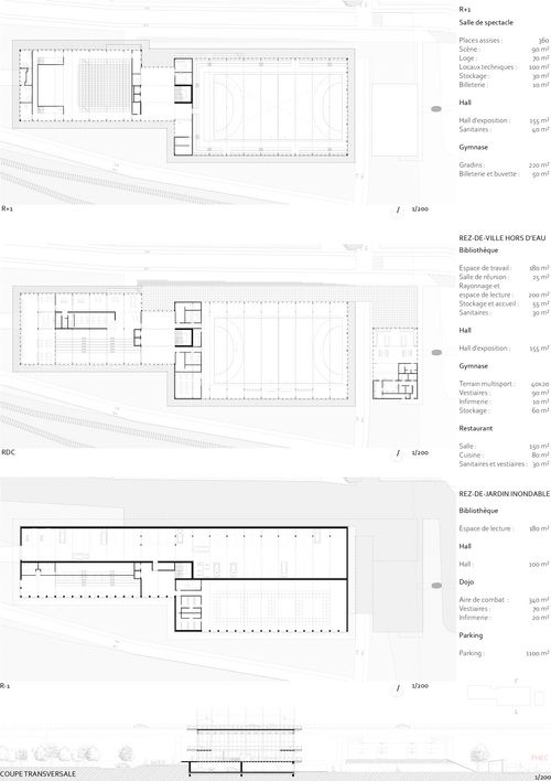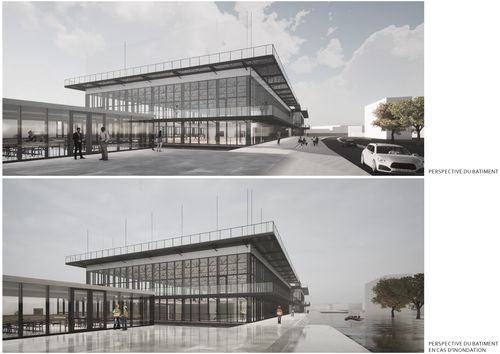 Le projet architectural, un centre multiculturel, déprivatise les abords de l'autoroute, apportant dynamisme et améliorant la connexion entre les villes. La requalification de la sous-face vient faire de cet espace un nouveau lieu de franchissement des infrastructures ainsi qu’un lieu de rassemblement. Sa position centrale le rend accessible et visible, et sa double matérialité sensibilise au risque d'inondation. Le rez-de-jardin inondable se distingue du rez-de-ville hors d'eau, servant de refuge en cas d'inondation. Les trois volumes du projet reflètent sa diversité programmatique, mutualisant les surcoûts inhérents à la construction résiliente.
