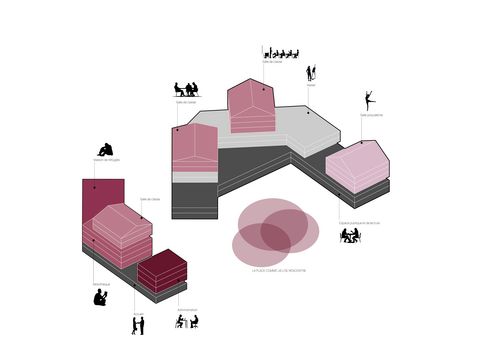 L'objectif du projet est en fait d'intégrer deux réalités : les étudiants et les habitants, en attirant l'attention de nouveaux visiteurs et trouver un nouveau point de repère pour les citoyens. La typologie choisie est celle de la cour, qui historiquement et aussi dans des contextes plus contemporains fonctionne pour les établissements d'enseignement. L’intention est de chercher à se protéger des autoroutes qui entourent la zone, en jouant sur les différentes hauteurs pour créer des places et des espaces publics verts et minéraux.