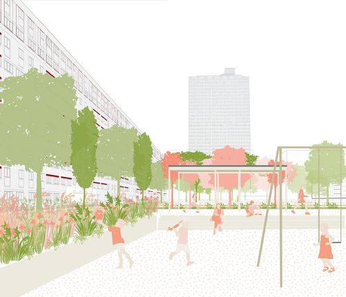 Par le biais d’ateliers avec les enfants et les femmes du grand ensemble du Bois l’Abbé, nous avons proposé un contre-projet à celui de l’ANRU. Le défi était de transformer l’existant tout en prenant en compte les enjeux sociaux et écologiques. Ainsi, main dans la main avec les habitants nous avons agi à l’échelle urbaine et architecturale sur ce patrimoine du XXe siècle.
