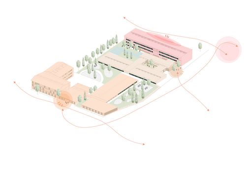 A l’échelle urbaine, nous avons renforcé la centralité du quartier, travaillé la question de la marche par la création de nouveaux cheminements ainsi que la question du seuil notamment pour répondre à cette limite floue entre espace privé et public. Ensuite, pour répondre aux besoins des habitants tout en respectant les qualités du bâti, nous avons repensé la programmation de la parcelle du groupe scolaire Jacques Solomon. Nous avons fait dialoguer une structure métallique des années 1960 avec de la paille pour relever les nouveaux défis contemporains.