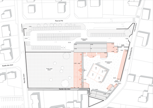 La ferme des Jeux a une véritable valeur patrimoniale et sentimentale puisque ce site est composé de différents bâtiments en pierre et de différentes époques. Le projet est axé sur la réhabilitation de certains bâtiments conservés et la création de bâtiments neufs. Un programme mixte et intergénérationnel prend place sur ce site : un pôle culture et loisirs, un pôle jeunesse, un pôle santé et un pôle de services de proximité. Ce programme a pour objectif de créer des liens entre les habitants et de dynamiser et rendre attractif le site de la ferme des Jeux.