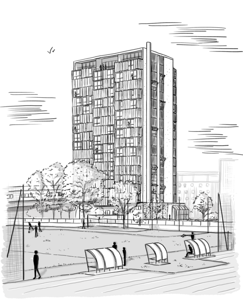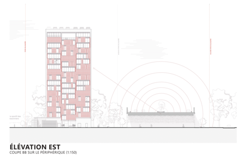 Le projet porte sur la réhabilitation et revalorisation sonore de la Tour des Poissonniers, située en bordure directe du Boulevard Périphérique, exposée à plus de 70dB.