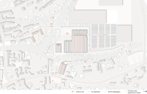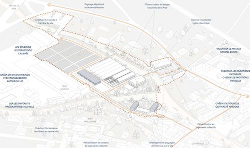 Sur ce site fortement enclavé physiquement et visuellement, de nouveaux accès et des espaces publics offrant une vue dégagée sur le site sont créés.