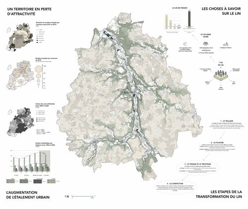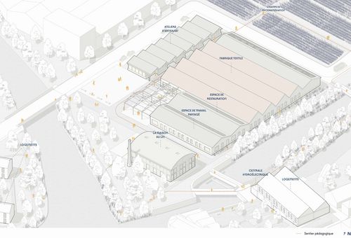 La transformation de cette friche comprend une fabrique textile dans l'ancienne filature, complétant la chaîne de transformation du lin à l’échelle territoriale et relocalisant l’entièreté de la filière. Des espaces de travail partagés, répondant aux problématiques d’éloignement de l’emploi, et un espace de restauration sont installés dans les anciens entrepôts.
