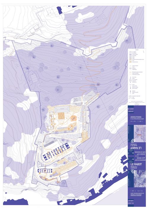 La réplique de la carte IGN du Rabot, propose un cheminement entre espaces publics, vestiges de chantiers et bâtiments construits. Ainsi, il est possible de cheminer sur le toit de la Chartreuse découpé en terrasses, de traverser le rez-de-chaussée d’Esclangon transformé en grandes cuisines communes, ou encore d’emprunter les escaliers du Vieux Barbillon pour accéder à son toit et à la passerelle le reliant à l’entrée de la tour du Rabot.