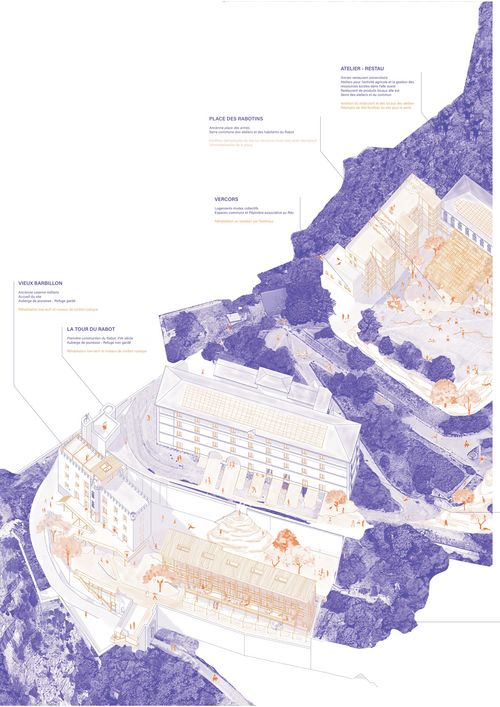 Dans la continuité d’un contre-projet, réalisé sur l’ancien institut de géographie Alpine, future extension de Babel Community, nous nous sommes intéressées à la mutation du site de la citadelle du Rabot.