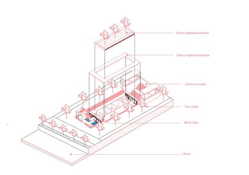 Nous avons voulu exploiter ces variations de niveau dans notre projet, en travaillant sur trois plans : le niveau du fleuve, le niveau de la ville et un niveau plus élevé pour offrir une vue d’ensemble sur la ville et le fleuve.
