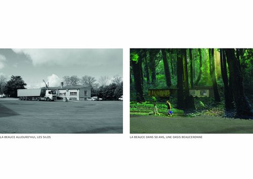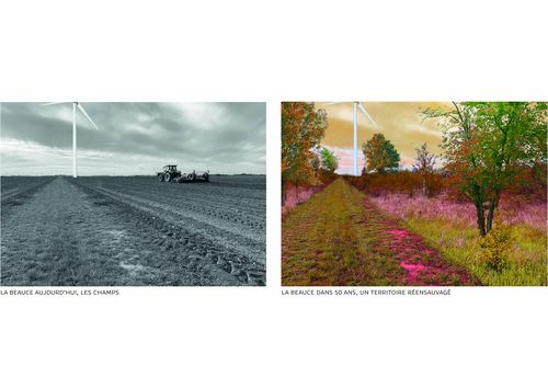Dans 50 ans, les terres agricoles, plus fertiles et très détériorées, seront réensauvagées par la faune et la flore. Au contraire, les terres qui étaient présentes sous le goudron des zones industrielles ont été protégées des produits chimiques et des engins agricoles. Etant encore fertiles et riches en nutriments, la végétation s’y développera facilement. Cela deviendra donc le nouvel espace de production alimentaire mais aussi un espace de refuge pour l’être humain au milieu de ce « désert » beauceron.