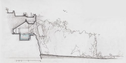 Un projet comme un pari : sur la falaise de la pointe de Suzac à Saint-Georges-de-Didonne, incrusté dans la roche, une forme de bain novatrice, variée, initiatique, dédiée à une nouvelle approche baptismal, un geste en symbiose intemporelle avec la roche-mère et l'océan.