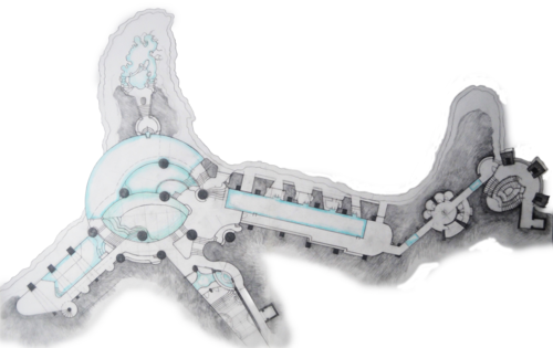 En surface se dessine, sur le chemin des douaniers requalifié, une forme d'agora en terrasse incorporant une nouvelle salle de musée en surplomb et un amphithéâtre de verdure adossé à la pente. Ces constructions, faites de pierres extraites de la falaise, recherchent le naturel, l’intemporel, un ailleurs ludique propre à la rêverie.