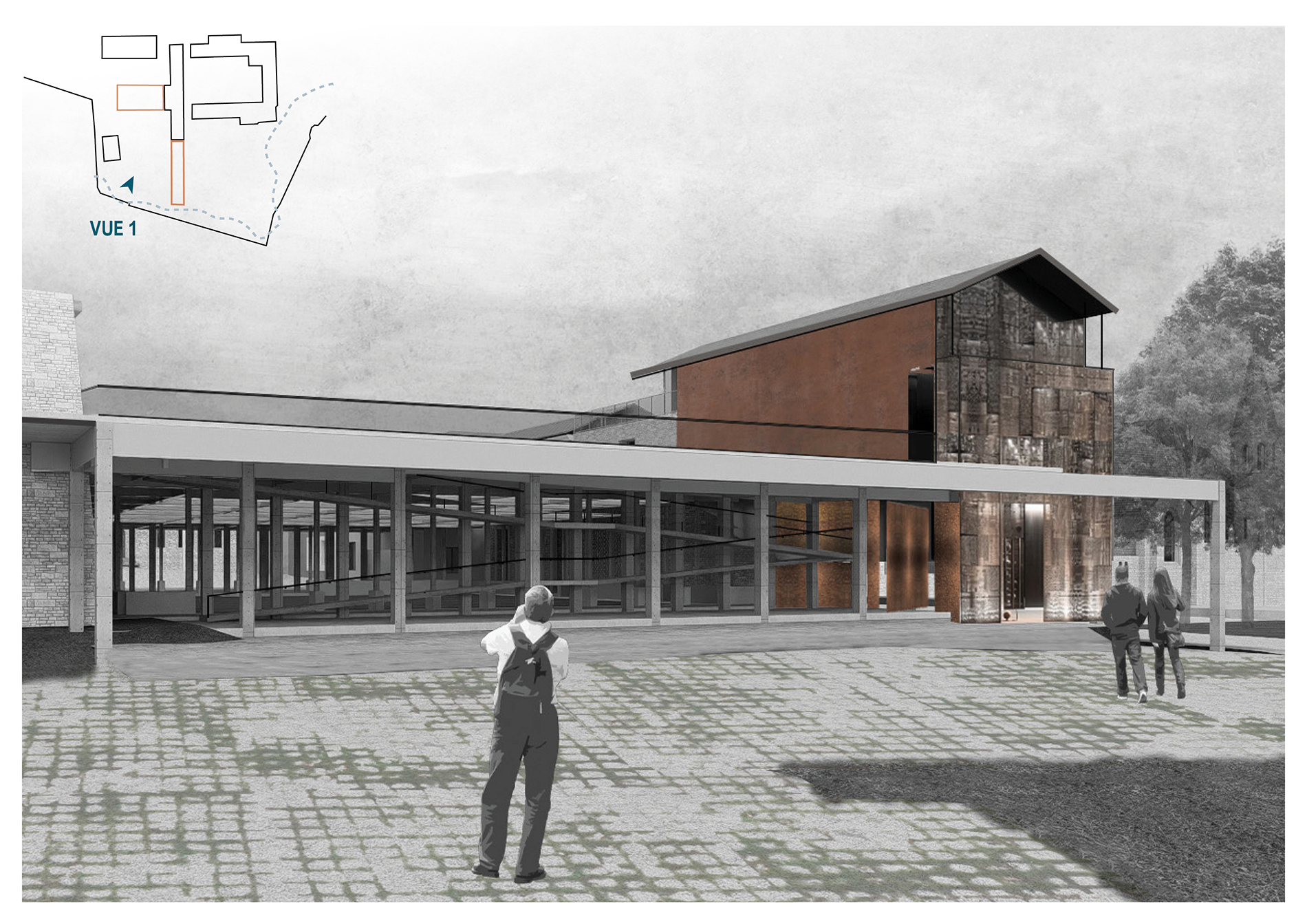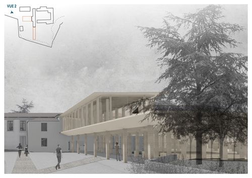 L’intervention architecturale tend à valoriser la zone au sud de la parcelle, en créant un musée archéologique selon les axes de la médiation culturelle et de la recherche archéologique. Pensé comme un espace de conservation, d’étude et de transmission, il permettra d’exposer la collection lapidaire, de révéler l’évolution historique de Saintes et de redonner vie à l’actuelle friche.