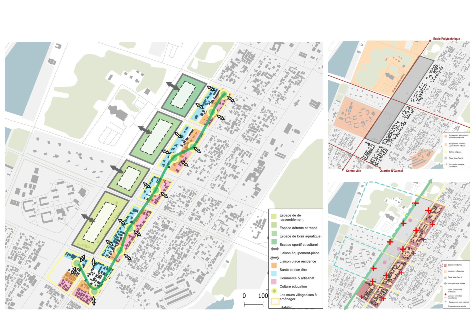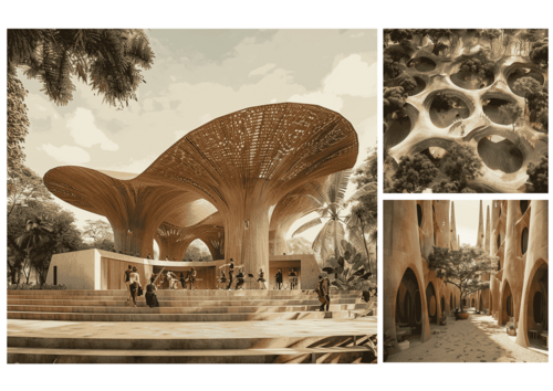 Le projet de réhabilitation de la place Jean-Paul II à Yamoussoukro s’inspire du génie constructif des termites pour repenser l’espace urbain de manière durable et contextuelle. Face à la croissance rapide et désordonnée des villes ivoiriennes, cette approche biomimétique propose une méthode de conception fondée sur quatre phases : exploration, coordination, optimisation et gestion. En intégrant les logiques naturelles d’organisation des termites et les traditions locales comme les cours villageoises “aoulo”, le projet vise à recréer un cœur urbain vivant, écologique et socialement inclusif.
