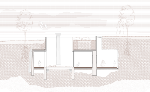 Le projet s’enterre partiellement pour mieux disparaître, laissant les vestiges antiques demeurer les éléments majeurs du paysage. La roche devient un matériau central : tantôt révélée à l’extérieur pour filtrer la lumière, tantôt présente à l’intérieur comme témoin géologique du passé.