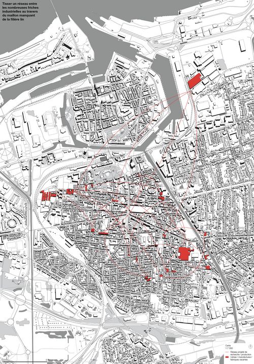Face à cette fragilité, le projet propose de réinvestir ces usines vacantes dans un réseau urbain dédié à la transformation et à l’innovation autour du lin. Bien que massivement cultivé dans le nord de la France, le lin est encore exporté pour être filé et tissé, en raison d’une filière incomplète sur place.
