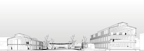 Production, recherche et expérimentation s’articulent autour d’une place publique et d’un pavillon démonstratif, reliant ainsi la mémoire industrielle de Calais à une filière locale en plein essor.