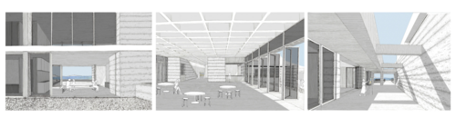 - un hall et des espaces ouverts au public tels que l’amphithéâtre s’orientent vers la mer ;