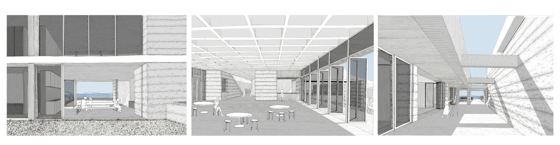 - les logements étudiants, reliés aux cheminements du jardin s’ouvrent sur la mer.