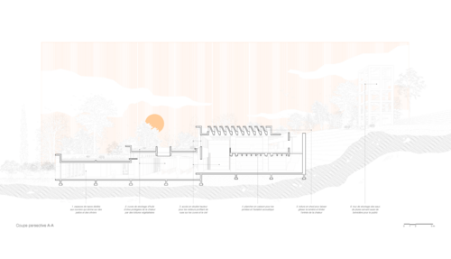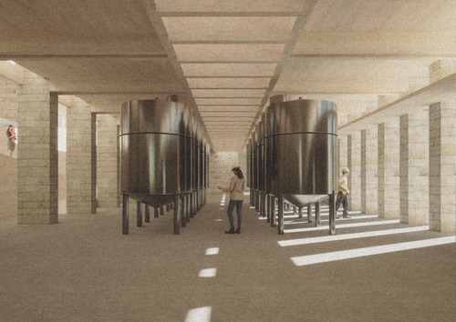 Ventilation : afin de réguler la chaleur et les odeurs qui se dégagent des cuves, les espaces intérieurs sont propices à une ventilation naturelle depuis les colonnes qui donnent sur le patio. Ce flux permet alors de maintenir une fraîcheur constante.