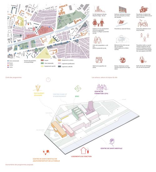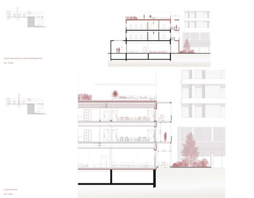 Dans ce cadre, mon travail s’est concentré sur la conception d’un centre d’aide et d’hébergement, impliquant une réflexion approfondie sur son insertion dans l’un des bâtiments existants de l’hôpital. L’enjeu était de garantir une cohérence avec le site et l’architecture en place, tout en donnant à ce centre une dimension structurante et fédératrice au cœur du projet.