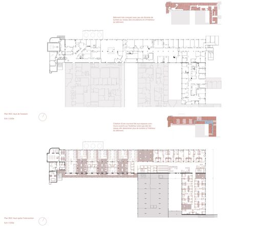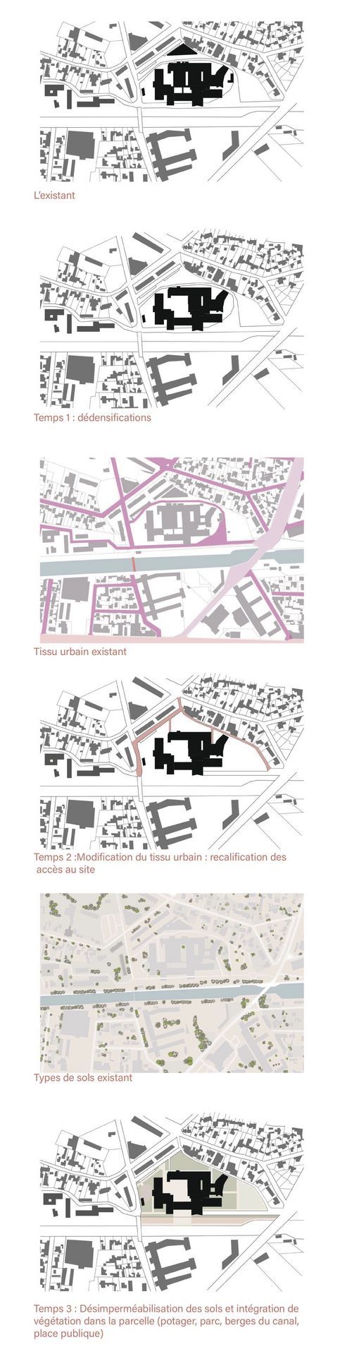 Face à ce contexte, le projet de réhabilitation a cherché à ouvrir l’hôpital sur son environnement, en transformant le site en un lieu de rencontre et de solidarité. La création d’une place centrale et la requalification programmatique des bâtiments ont constitué des leviers essentiels pour renforcer la cohésion urbaine.