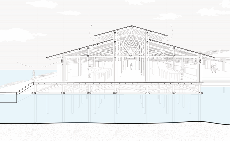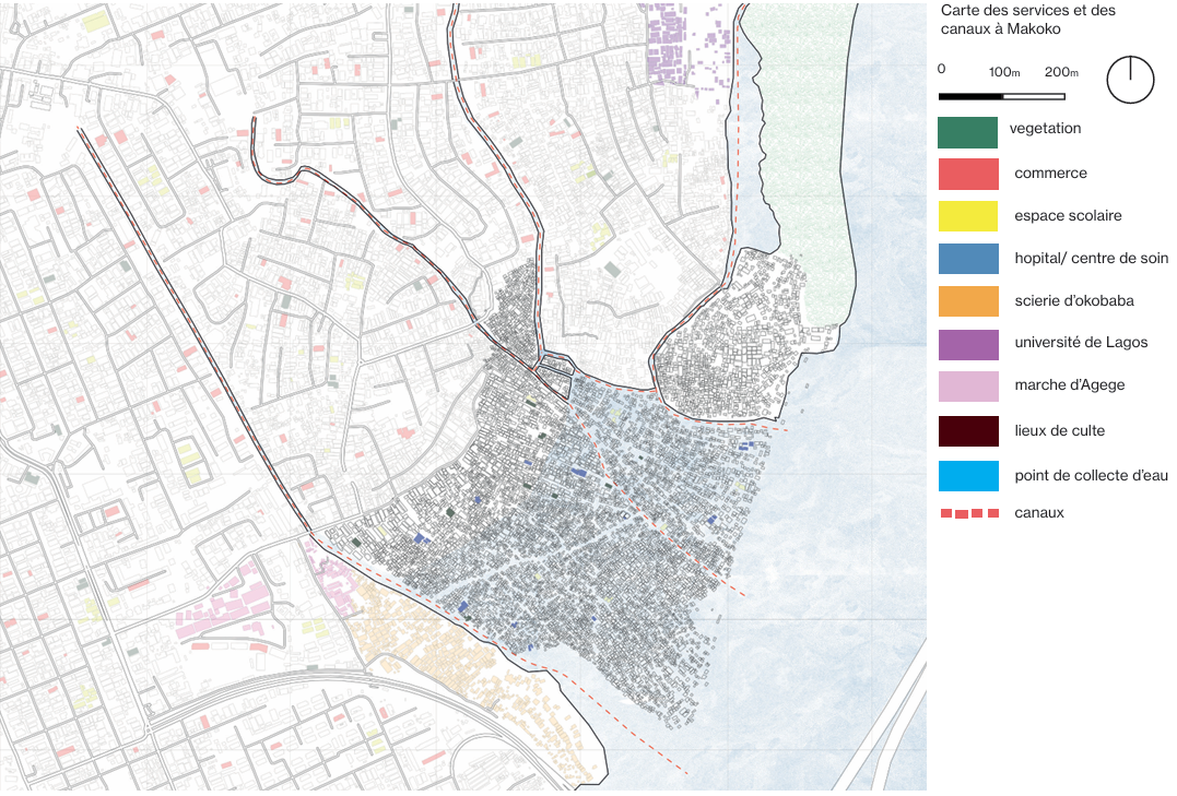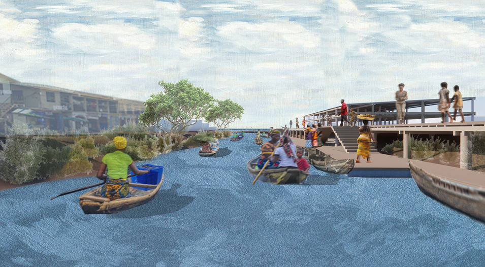Mon projet de fin d’études porte sur Makoko, quartier flottant de Lagos, marqué par de fortes contraintes mais aussi par une remarquable résilience communautaire. Dans la continuité de mon mémoire, j’ai souhaité développer un projet pilote répondant aux enjeux d’assainissement et de gestion des déchets, problématiques majeures fragilisant le cadre de vie. L’intervention s’organise autour de trois axes complémentaires : la réhabilitation des canaux, afin de les assainir et de les transformer en voies de circulation pour améliorer la mobilité ; l’implantation d’écostations modulables regroupant sanitaires, lavoirs et espaces de collecte ; et la création d’un pôle communautaire de recyclage, où les déchets sont transformés en matériaux de construction tels que briques, tuiles ou réservoirs. Ce projet propose ainsi une approche durable et inclusive, valorisant les ressources locales, créant des emplois et renforçant la résilience urbaine de Makoko, démontrant que même dans un contexte précaire, des solutions innovantes et intégrées peuvent émerger.