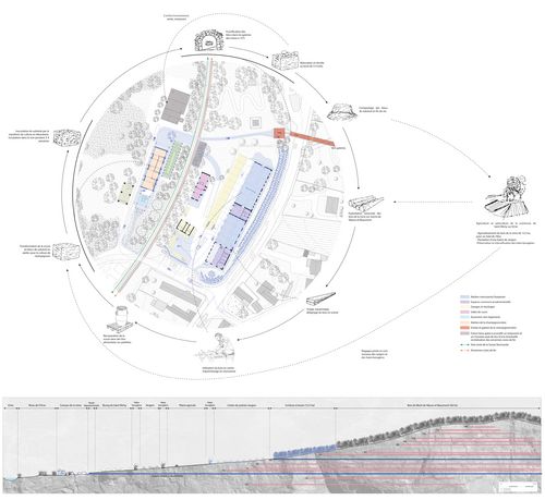 Le projet suivant propose une halte à Saint-Rémy-sur Orne avec la reconversion de l’ancienne emprise des galeries de la mine en une zone sylvicole et mycicole. L’ancien carreau de mine sera transformé en aire artisanale accueillant une scierie, une école de menuiserie, une champignonnière et des logements. Cette initiative vise à réhabiliter le patrimoine existant tout en dynamisant l’économie locale.
