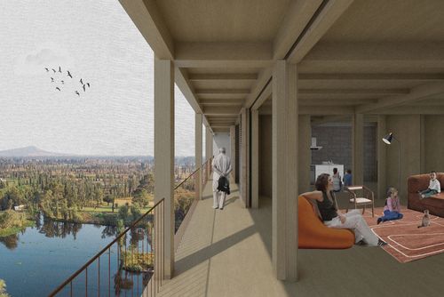 Le projet architectural transpose ces réflexions à Xochimilco, territoire singulier soumis à la fois aux pressions de l’urbanisation et à la nécessité de préserver un patrimoine agricole unique. Il propose l’aménagement d’une lisière urbaine favorisant la coexistence entre habitat et agriculture. Ce projet se développe à plusieurs échelles d’intervention, chacune apportant des réponses complémentaires et cohérentes aux enjeux du territoire. À l’échelle territoriale, l’intervention vise à protéger les chinampas, à contenir l’étalement urbain et à réintégrer les canaux dans le paysage de la ville. À l’échelle urbaine, elle consiste à requalifier les réseaux viaires, à créer de nouveaux espaces publics et à reconnecter les habitants à leur environnement aquatique. Enfin, à l’échelle architecturale, le projet développe un prototype d’habitat hybride, inspiré des maisons traditionnelles mexicaines, qui intègre une densité maîtrisée tout en renouant avec une relation vivante à l’eau.