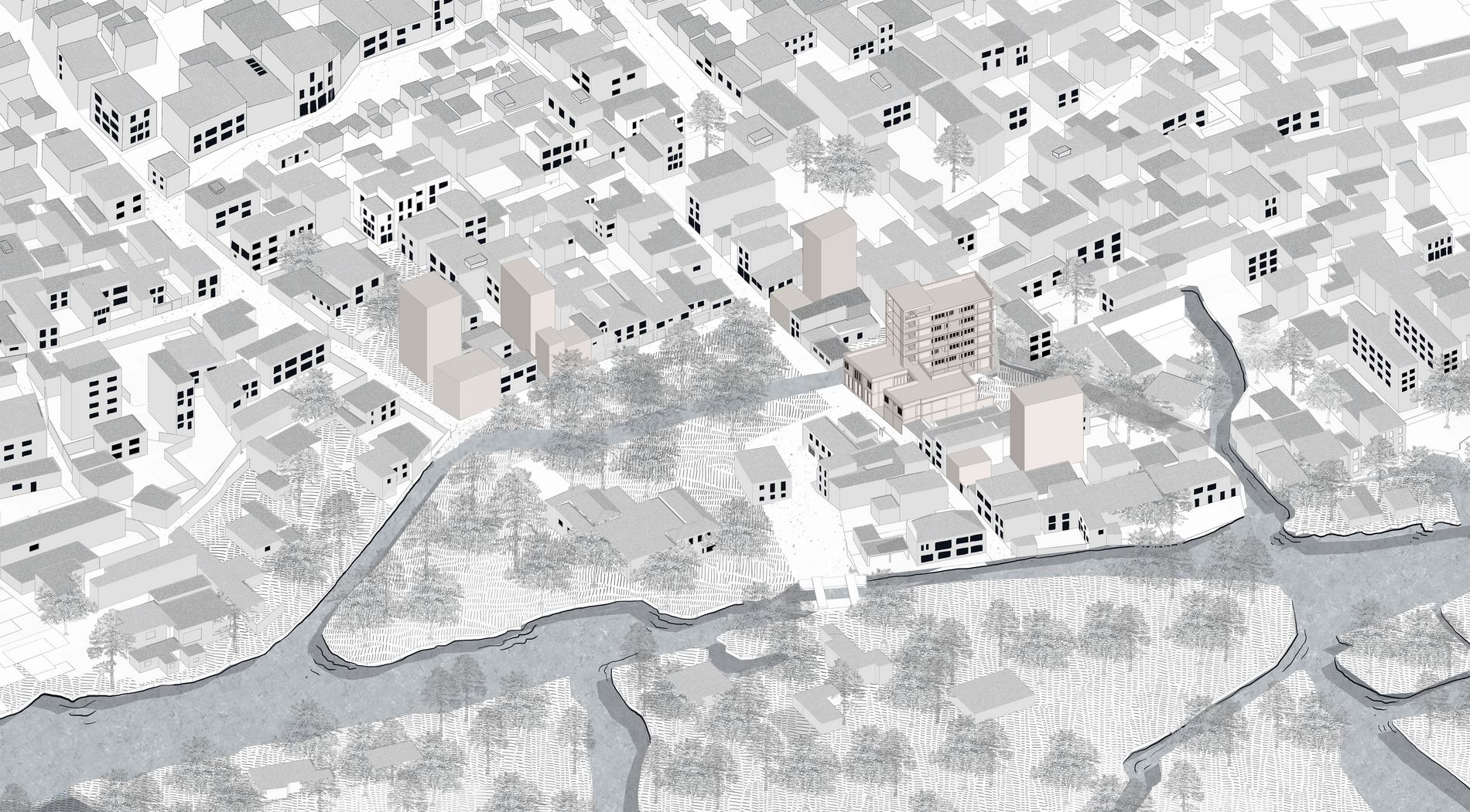 Le projet architectural transpose ces réflexions à Xochimilco, territoire singulier soumis à la fois aux pressions de l’urbanisation et à la nécessité de préserver un patrimoine agricole unique. Il propose l’aménagement d’une lisière urbaine favorisant la coexistence entre habitat et agriculture. Ce projet se développe à plusieurs échelles d’intervention, chacune apportant des réponses complémentaires et cohérentes aux enjeux du territoire. À l’échelle territoriale, l’intervention vise à protéger les chinampas, à contenir l’étalement urbain et à réintégrer les canaux dans le paysage de la ville. À l’échelle urbaine, elle consiste à requalifier les réseaux viaires, à créer de nouveaux espaces publics et à reconnecter les habitants à leur environnement aquatique. Enfin, à l’échelle architecturale, le projet développe un prototype d’habitat hybride, inspiré des maisons traditionnelles mexicaines, qui intègre une densité maîtrisée tout en renouant avec une relation vivante à l’eau.