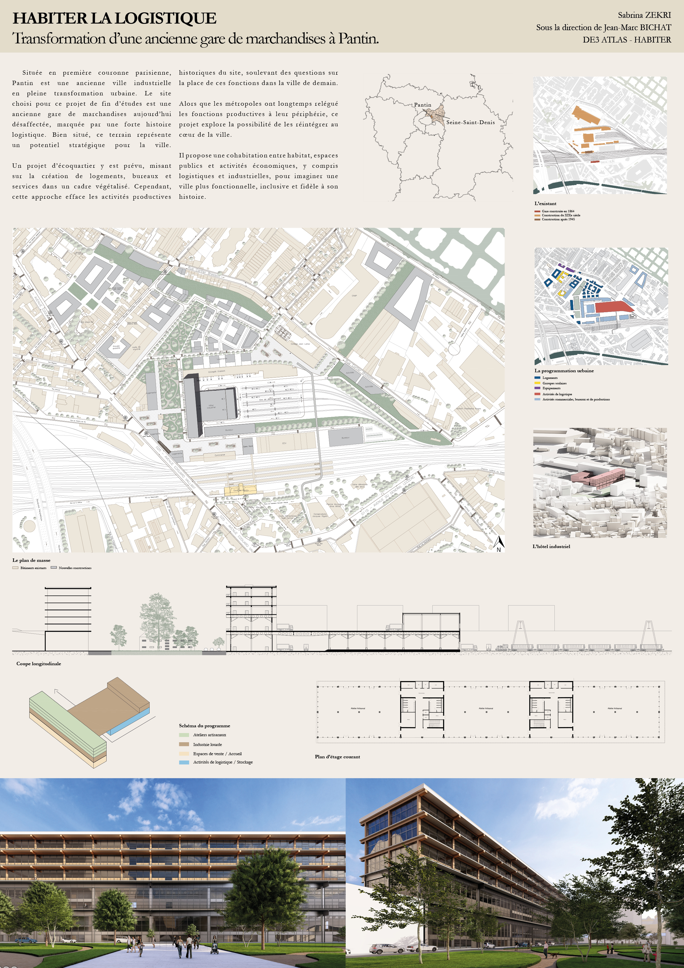 Située en première couronne parisienne, Pantin est une ancienne ville industrielle en pleine transformation urbaine. Le site choisi pour ce projet de fin d’études est une ancienne gare de marchandises aujourd’hui désaffectée, marquée par une forte histoire logistique. Bien situé, ce terrain représente un potentiel stratégique pour la ville.