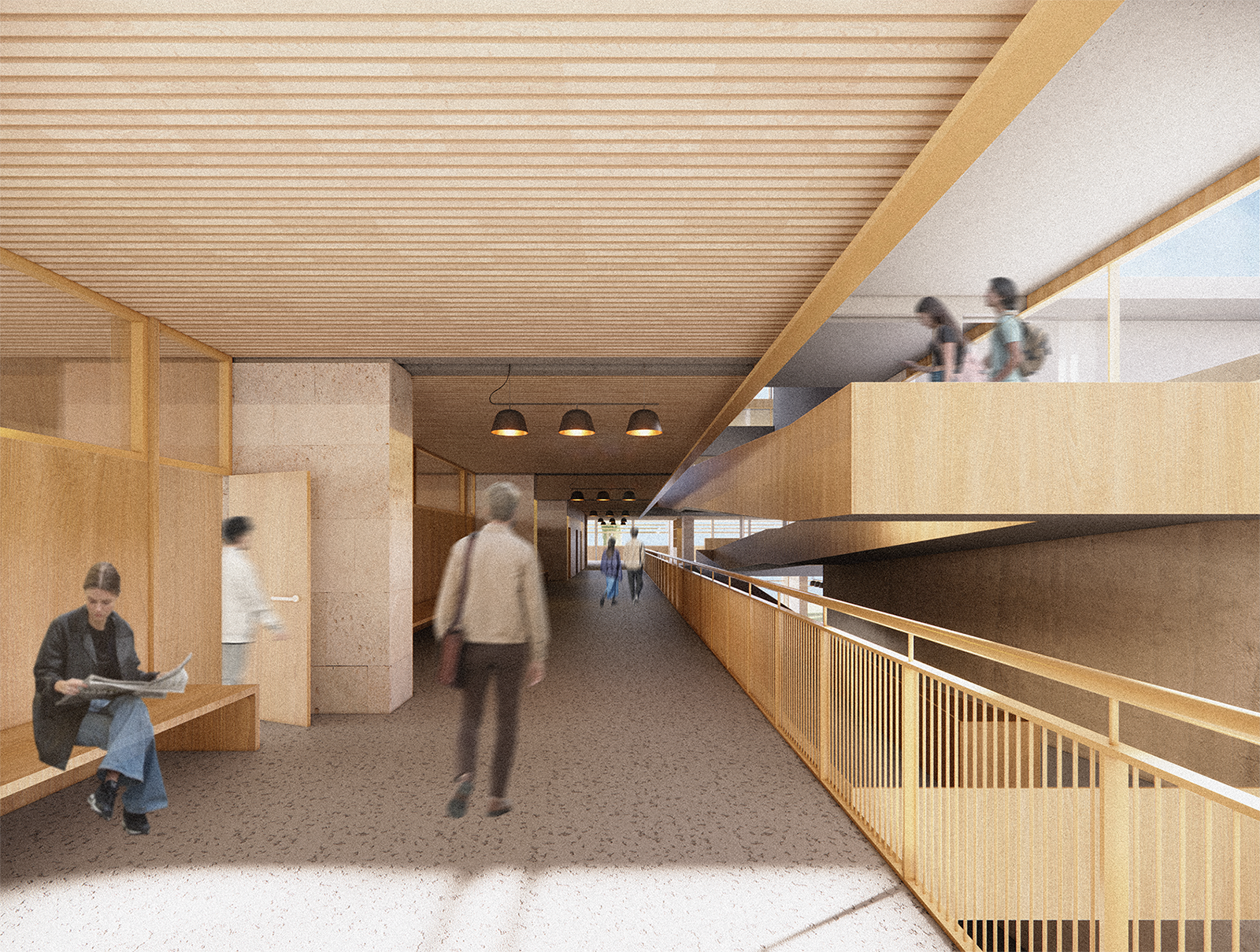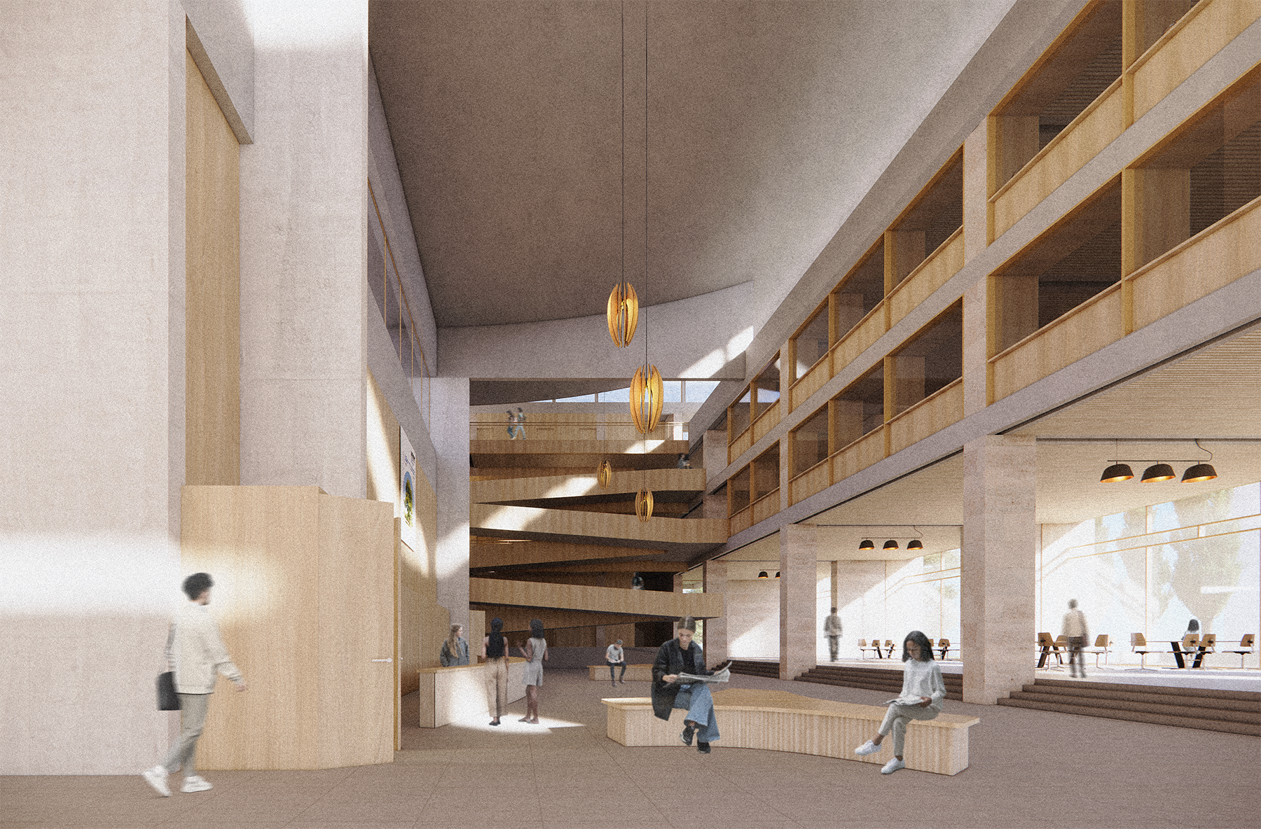 Axé sur l’interaction entre différents espaces, le projet est organisé autour d’un atrium et d’une cour, des lieux fédérateurs favorisant la rencontre entre étudiants, enseignants et chercheurs.