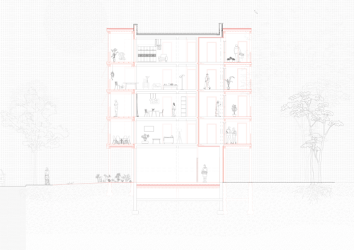 Ce projet de fin d’études porte sur le grand ensemble de la Vallée aux Renards, entre Fresnes et l’Haÿ-les-Roses (Val-de-Marne). Il interroge le devenir du quartier face à la menace de démolition, en valorisant ses qualités architecturales et paysagères. Sur le plan urbain, l’intervention redonne une centralité par la création d’une place publique et de commerces à l’entrée, et recompose des îlots générant de nouveaux paysages intérieurs à partir de l’existant. À l’échelle architecturale, le bâtiment longeant le parc est reconsidéré dans son épaisseur : les logements sont agrandis, remis aux normes côté cœur d’îlot, et dotés de terrasses et jardins d’hiver côté parc, offrant de nouvelles qualités d’usage. Cette stratégie, rendue possible par la répétitivité et la structure en béton armé, est reproductible à l’ensemble du quartier. Enfin, l’intervention est pensée par phases pour maintenir les habitants sur place, en mobilisant les logements vacants pour les reloger temporairement. Le choix d’une structure métallique, venant se greffer de part et d’autre des immeubles, accompagne cette démarche.