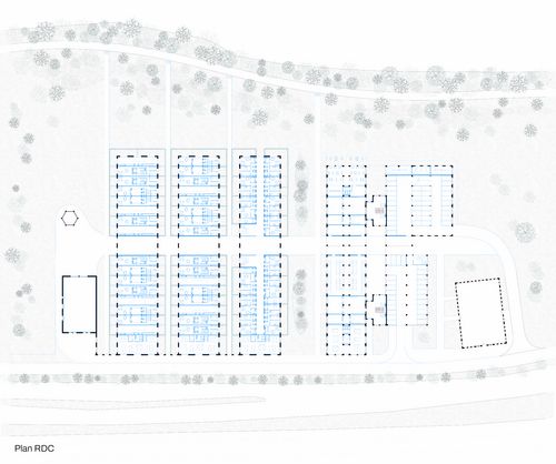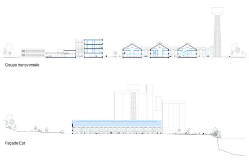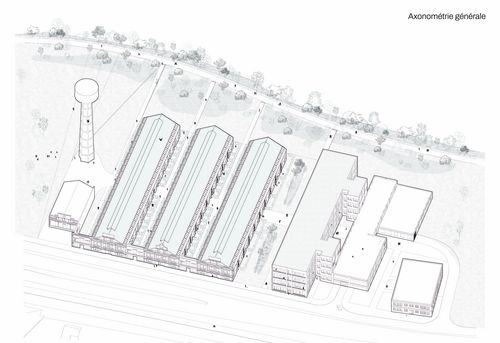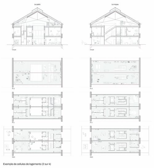 Les halles sont considérées comme des espaces capables dans lequel une même volumétrie peut proposer des situations différentes. Plusieurs manières fortes d'habiter se dégagent alors, tirant à chaque fois parti des spécificités identiques présentes dans la largeur d’une trame structurelle.