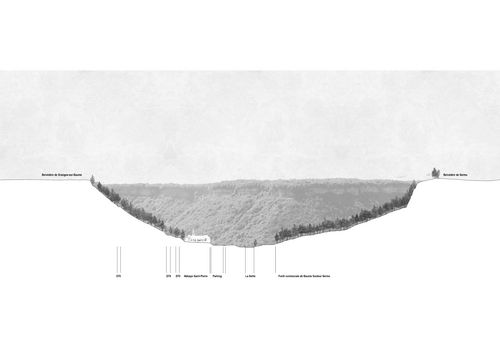 Le projet prend racine à Baume-les-Messieurs, dans le Jura. Ce site habité concentre de multiples enjeux : pression touristique, fragilisation du tissu rural, évolution des usages patrimoniaux, perte du lien entre bâti et paysage. L’ambition est de repenser ces relations, en révélant et réinscrivant l’abbaye dans son contexte topographique et symbolique. L’architecture s’y conçoit comme une stratification : ni restitution idéalisée, ni refus d’intervention, mais dialogue attentif avec l’existant, dans l’esprit de Françoise Choay.