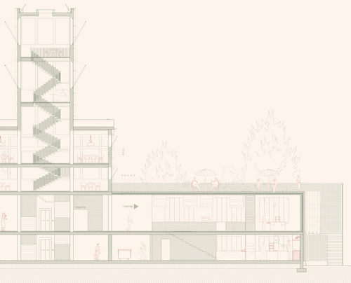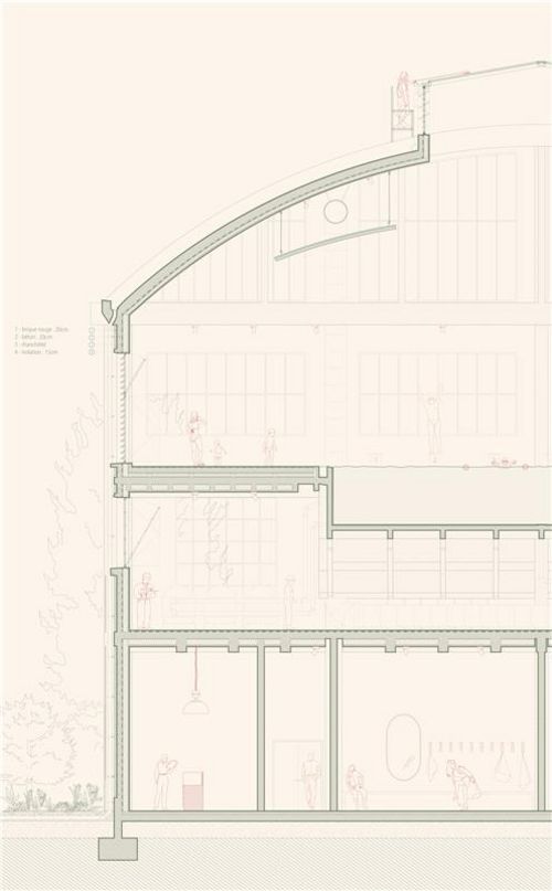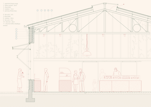 Notre démarche dépasse la simple réhabilitation technique pour proposer une réécriture sensible entre mémoire et transformation. Les bâtiments emblématiques trouvent une nouvelle vocation : le Paquebot devient un centre omnisports lié au futur collège, la Halle accueille un marché aux diverses typologies, tandis que le Four se transforme en lieu culturel et associatif.